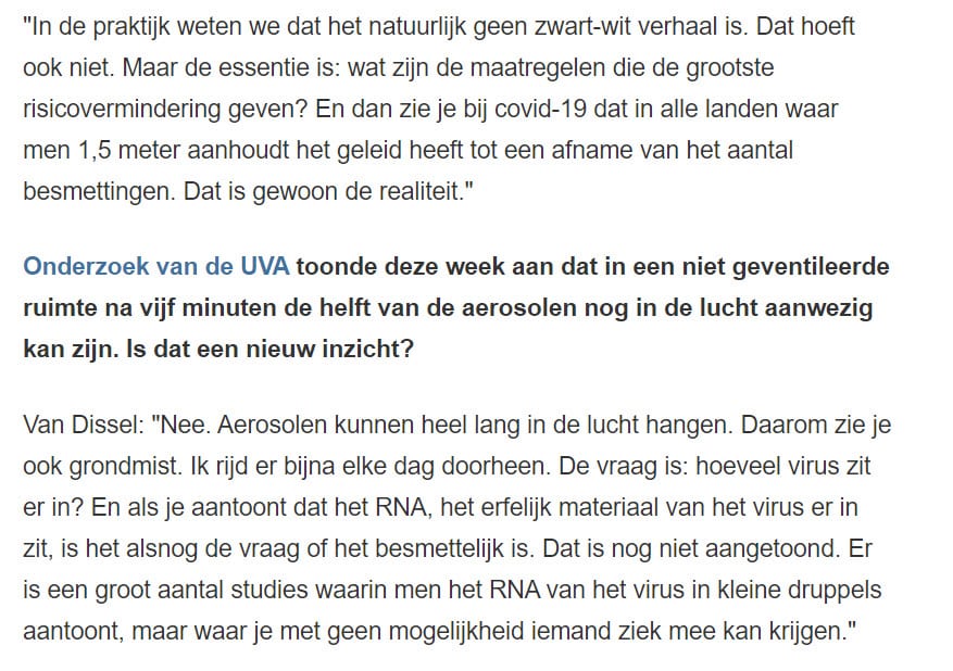 verspreid zou worden, dan hadden de 1,5 meter afstandsmaatregelen geen