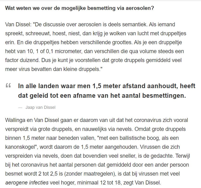 verspreid zou worden, dan hadden de 1,5 meter afstandsmaatregelen geen