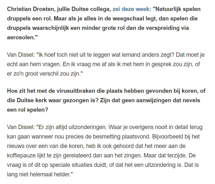 op 26 mei in een podcast zei</a>: Druppeltjesoverdracht blijft ook een
