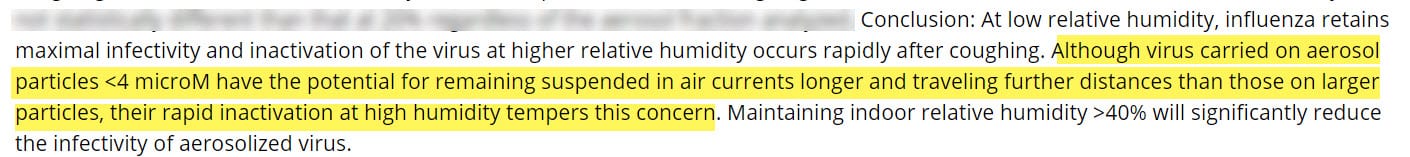 Hier wordt beschreven dat het experiment aantoonde dat de verspreiding van deze aerosolen aanzienlijk daalt bij hogere luchtvochtigheid. En daarmee lijkt de bewijsvoering vrijwel rond te zijn.